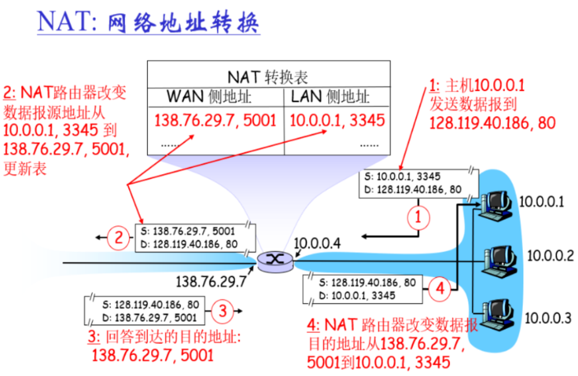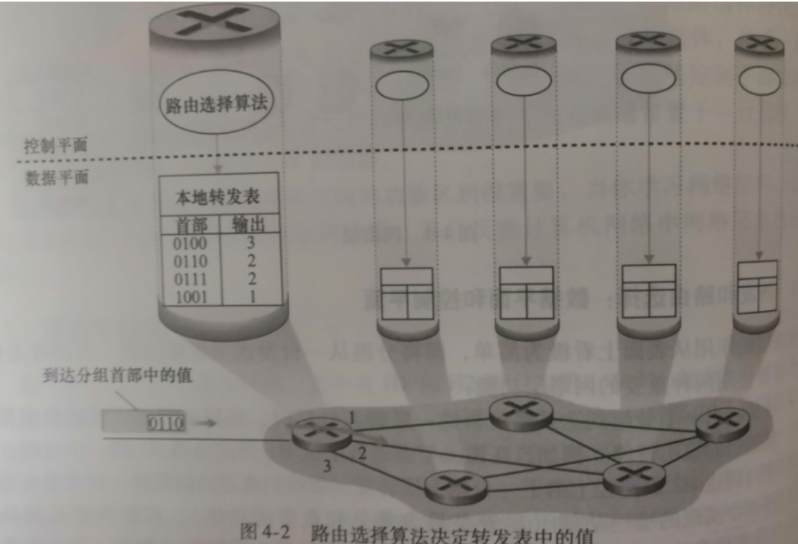在因特网中,每台端系统具有一个IP地址,每台路由器具有一个转发表(用于将目的地址(或者其一部分)映射为输出链路)。因特网中具有一些特殊的路由选择协议,用于自动设置转发表。